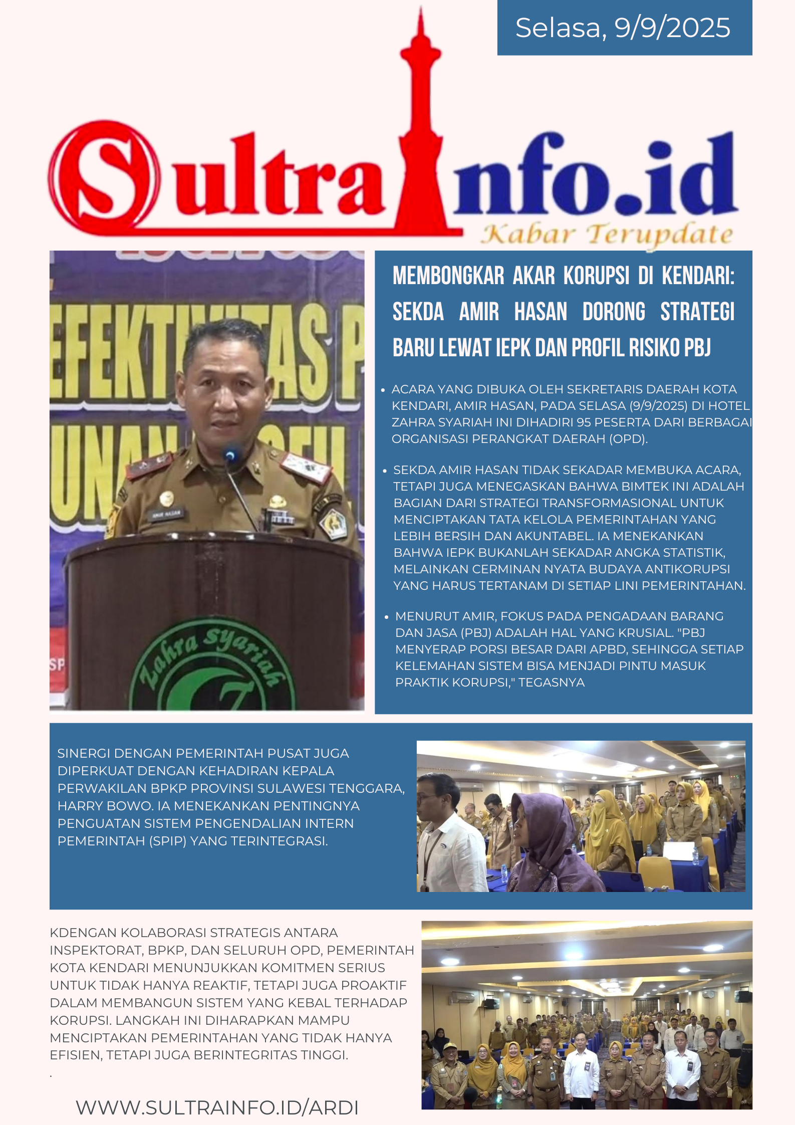Hal ini menunjukkan bahwa pemberantasan korupsi adalah tanggung jawab kolektif seluruh elemen pemerintahan.Dengan kolaborasi strategis antara Inspektorat, BPKP, dan seluruh OPD, Pemerintah Kota Kendari menunjukkan komitmen serius untuk tidak hanya reaktif, tetapi juga proaktif dalam membangun sistem yang kebal terhadap korupsi. Langkah ini diharapkan mampu menciptakan pemerintahan yang tidak hanya efisien, tetapi juga berintegritas tinggi.