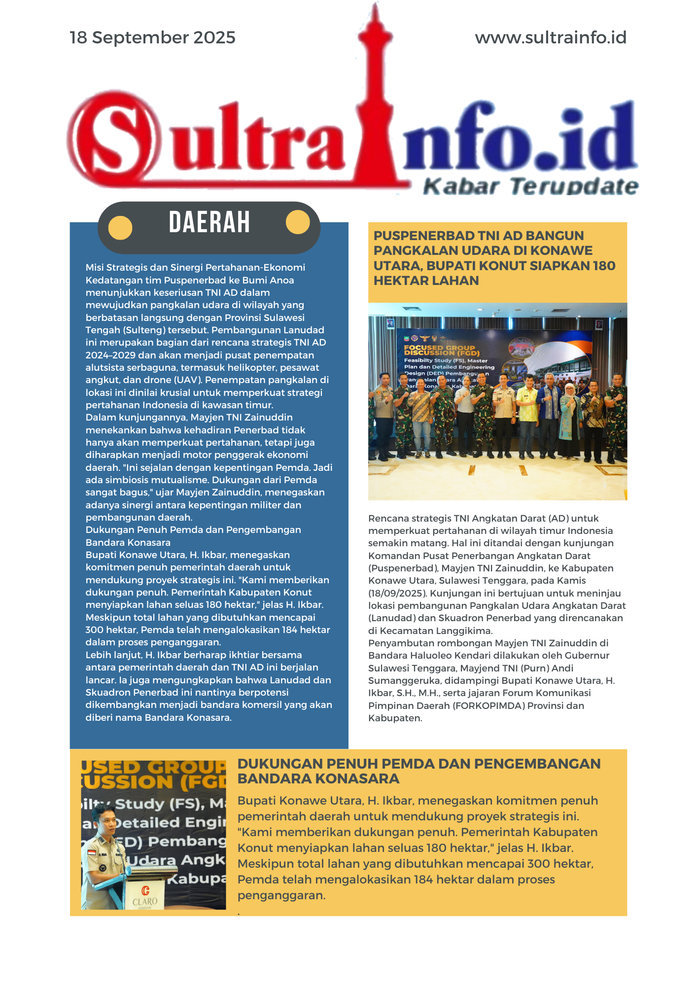 Lebih lanjut, H. Ikbar berharap ikhtiar bersama antara pemerintah daerah dan TNI AD ini berjalan lancar. Ia juga mengungkapkan bahwa Lanudad dan Skuadron Penerbad ini nantinya berpotensi dikembangkan menjadi bandara komersil yang akan diberi nama Bandara Konasara.